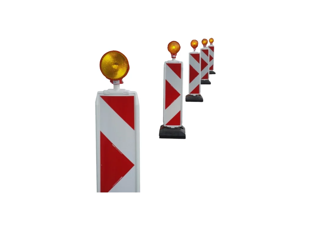 Le jeu de balises comprenant jusqu'à dix feux assure une gestion claire et sans ambiguïté du trafic. Alors que le premier feu clignotant attire immédiatement l'attention des usagers de la route, les feux suivants, à lumière continue, indiquent de manière fiable la suite du parcours. Le système est conçu pour résister aux intempéries et est robuste. Il s'installe sans outils en quelques gestes seulement. Une mise en service rapide et simple est ainsi garantie à tout moment.