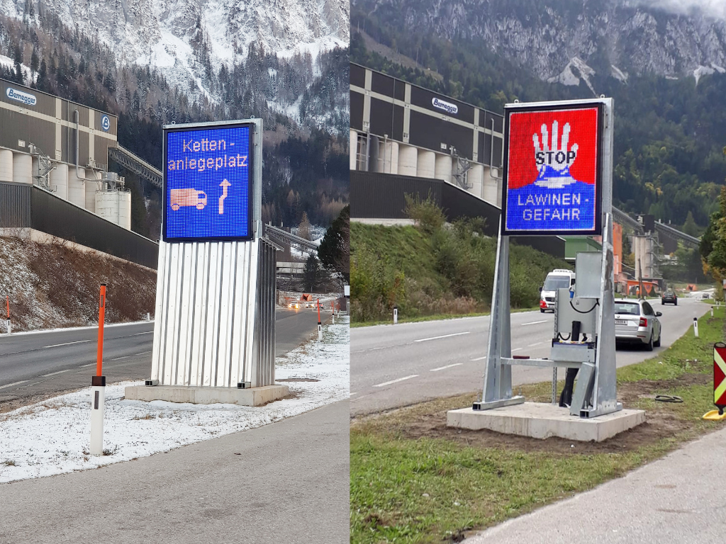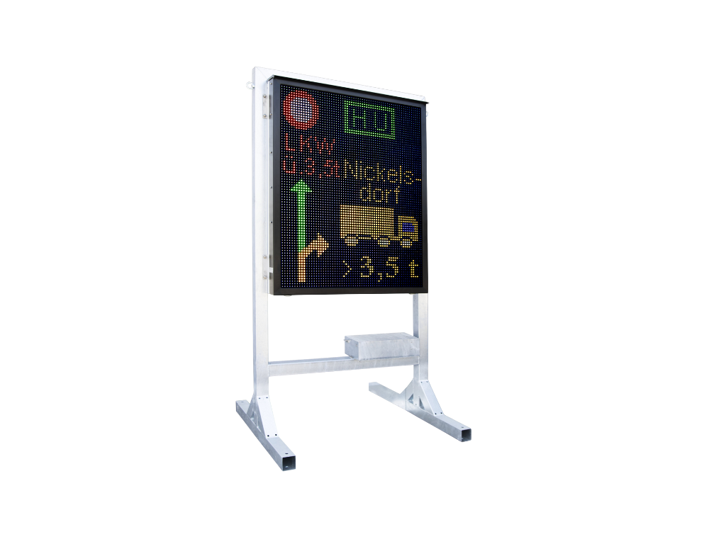 Ce système de panneaux à messages variables séduit non seulement par sa taille et sa haute résolution, mais offre également une flexibilité maximale à l'utilisateur grâce à ses nombreuses possibilités d'application et d'affichage. Le panneau d'affichage LED peut être monté avec ou sans cadre métallique, selon les besoins. Le contrôle s'effectue de manière pratique via le portail web (G.T.M.S.) sur smartphone, tablette ou PC. Un système autonome qui informe de manière visible les usagers de la route.