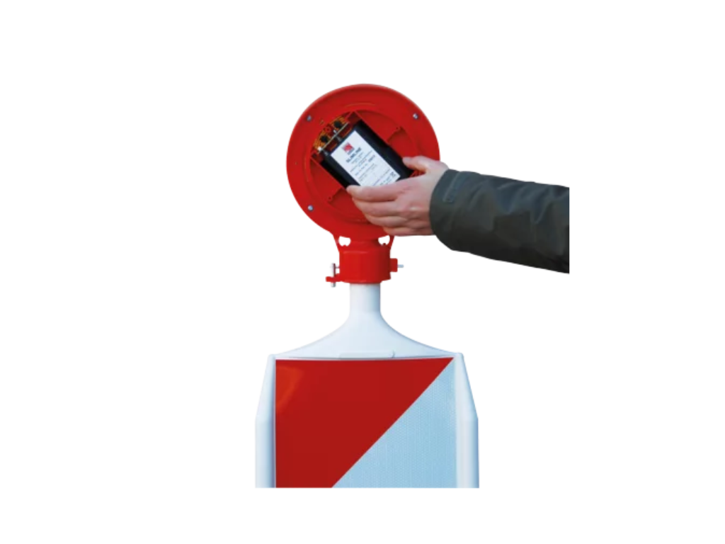 Le feu OptiLED certifié BASt et conforme aux normes VSS s'installe en quelques gestes sur une balise réversible. Il se caractérise par sa faible consommation électrique, ses diodes électroluminescentes longue durée et son design pratique. Le remplacement de la batterie peut ainsi s'effectuer sans démonter le feu.